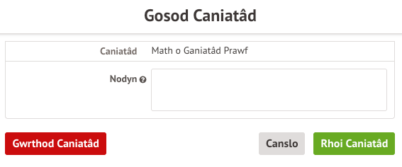 Os byddwch yn dewis gwrthod y cydsyniad, gofynnir i chi gadarnhau eich dewis.