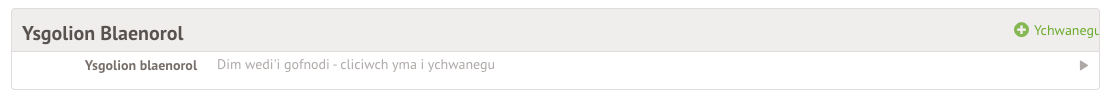 I ychwanegu ysgol hanesyddol newydd, cliciwch ar +Ychwanegu.