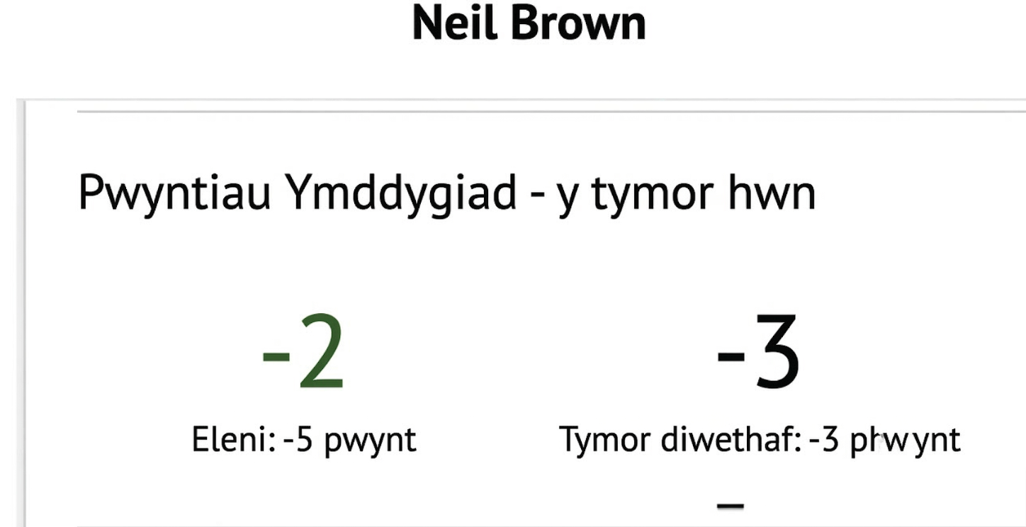 Mae’r enghraifft isod yn dangos graddfa niwtral sy’n cadw cyfanswm cyfredol pwyntiau cadarnhaol a negyddol gyda’i gilydd. Efallai y byddwch chi’n gweld un raddfa fel hon, graddfeydd lluosog neu raddfa gadarnhaol yn unig, yn dibynnu ar beth mae eich ysgol wedi penderfynu ei arddangos.