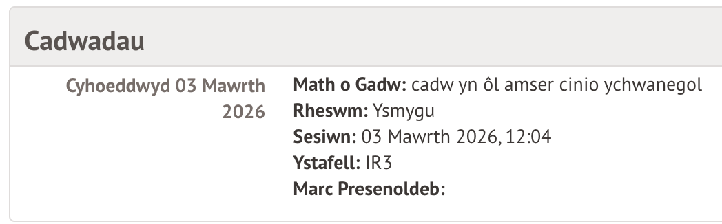 Gallwch chi weld unrhyw achosion o gadw’r myfyriwr yn ôl, yn cynnwys p’un a fynychodd ai peidio.