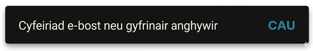 Bydd hyn yn mynd â chi at ail sgrin lle gallwch gofnodi eich cyfeiriad e-bost i greu neges e-bost newid cyfrinair.