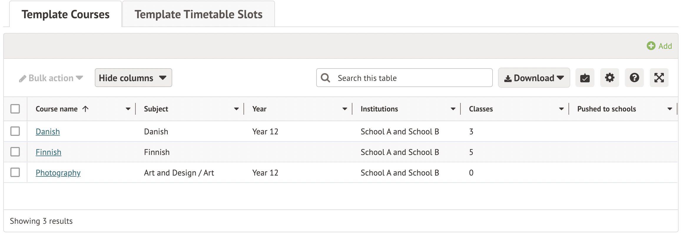 You can click into these courses to add more timetable slots if needed, then push to the schools.