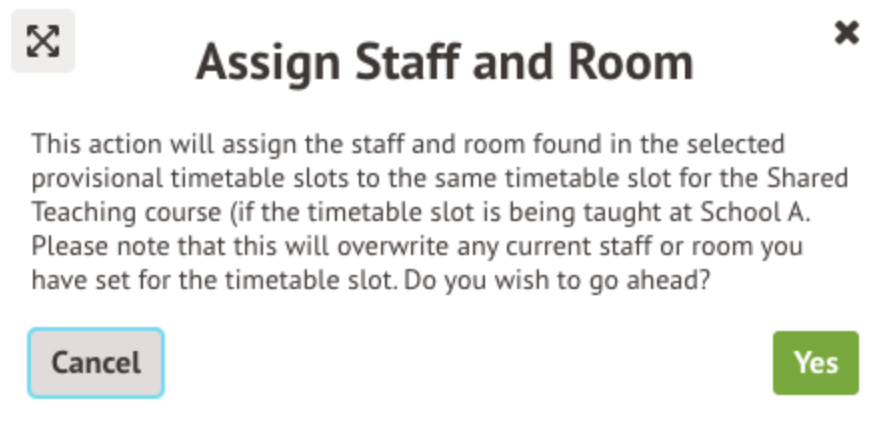 Top Tip: This will overwrite any staff and rooms already assigned.