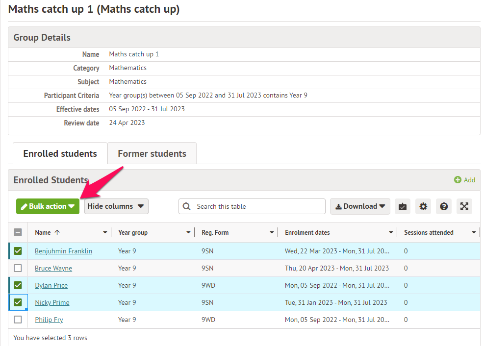 - Under Enrolled Students, click the tick box next to the student names you wish to contact