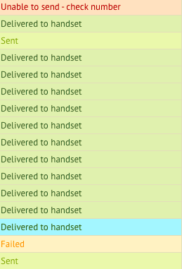 - Red - Fail. There is a problem with the mobile number so we haven’t been able to send the message at all (e.g. the number is not a real number)