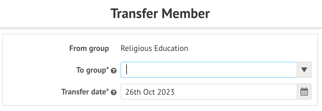If the Teaching Group is linked to a Programme Instance for a Programme of Study, you won't be able to select a teaching group to transfer students to.