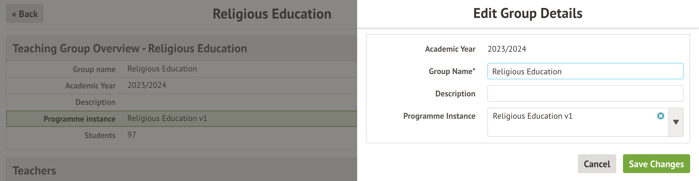 You'll need to click into the enrolment into the teaching group or registration form and edit that instead.