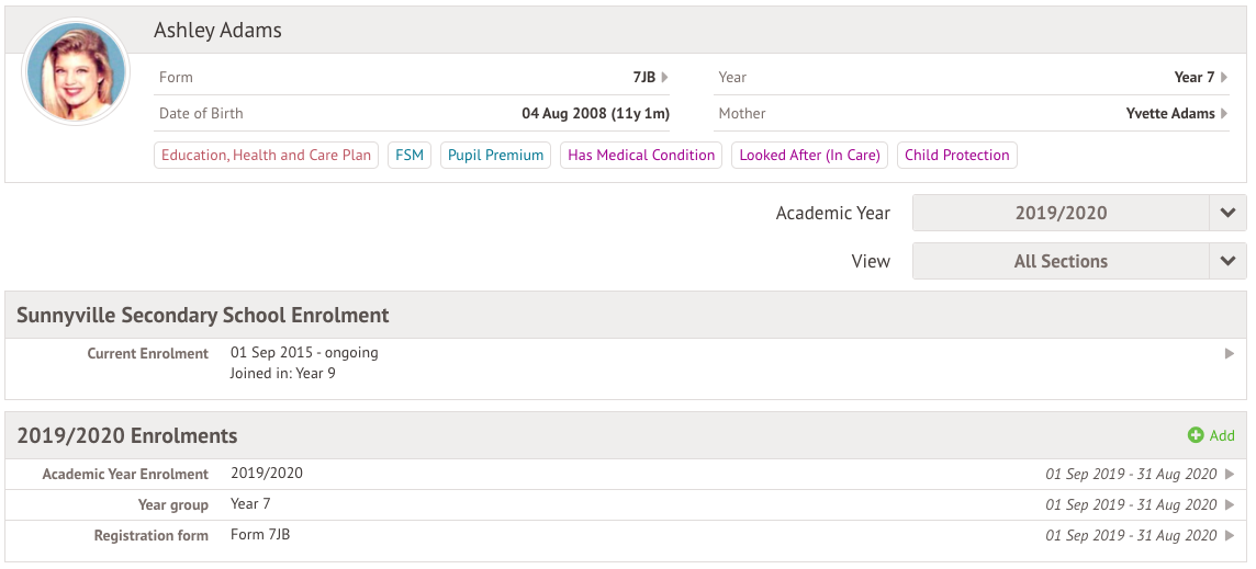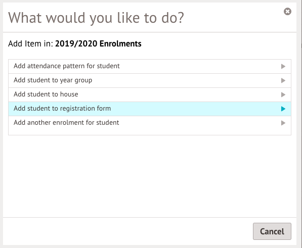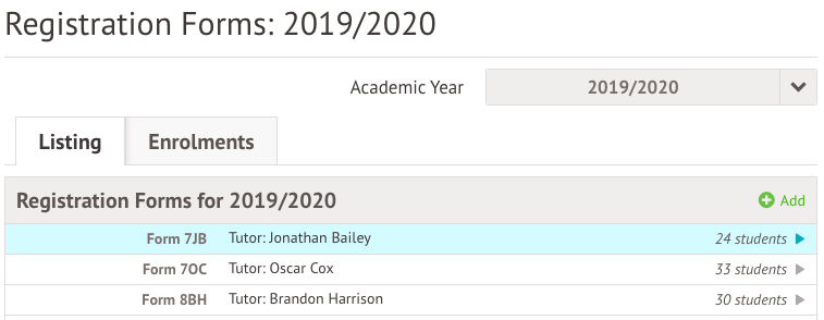 - Enrolment: Administer All/My Students - Manage students' enrolments into the school, and into their year groups, registration forms and houses