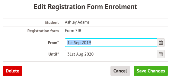 - Edit the student's enrolment into the new class to be from the start of the academic year.
