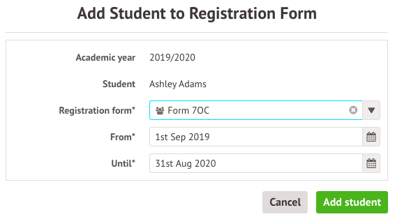 If a child was added by mistake to a class, you might not be able to transfer them as you can only transfer to registration forms like to the same year. Instead, you'll need to delete the incorrect enrolment from their Student Profile in the Enrolment section.