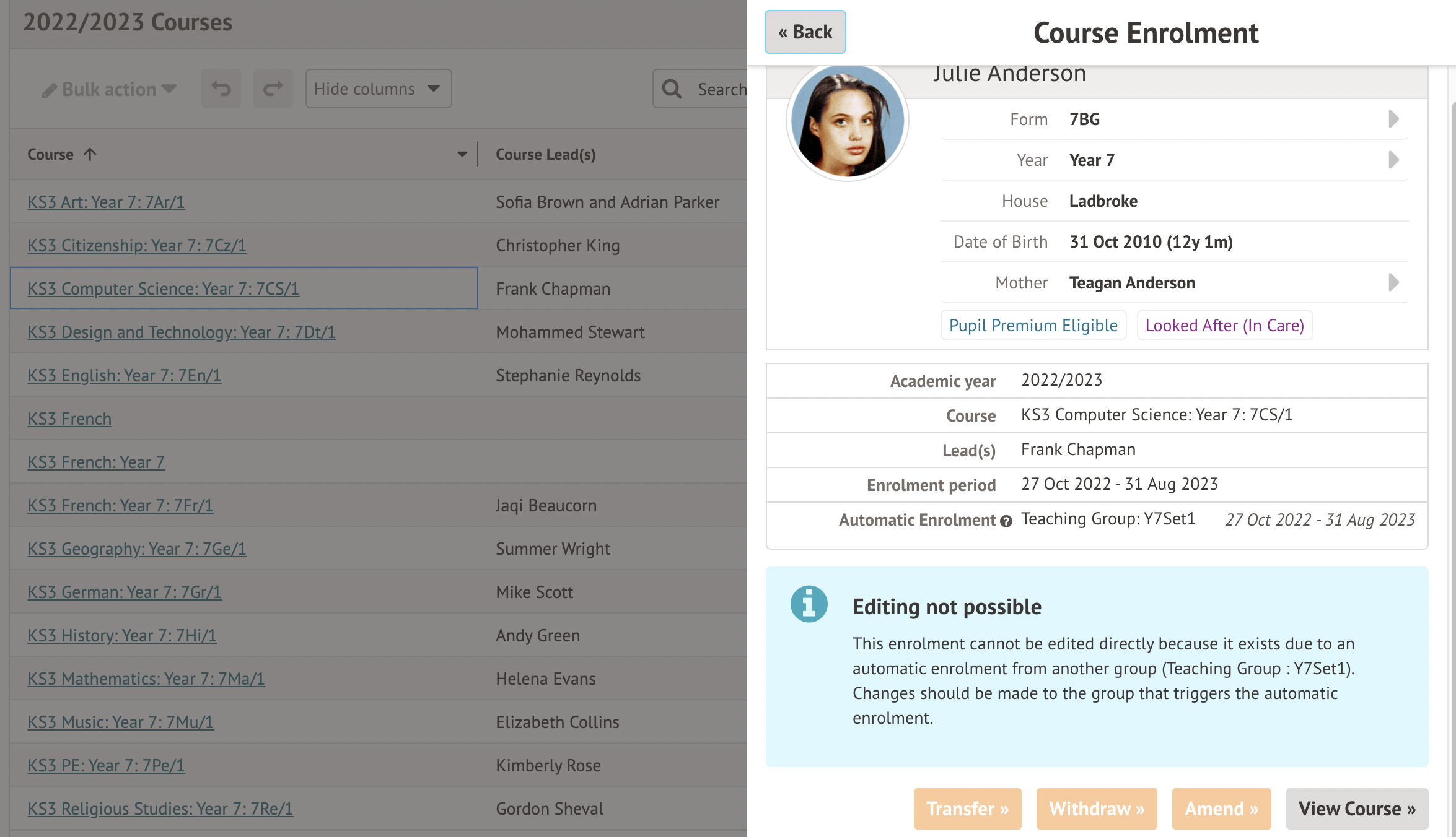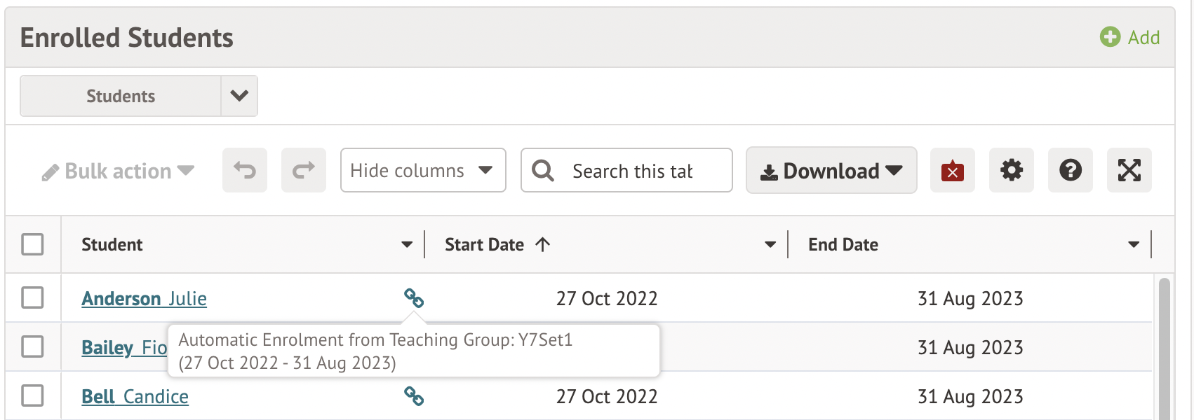 For more information on automatic enrolments and teaching groups, see our Enrolment Glossary.