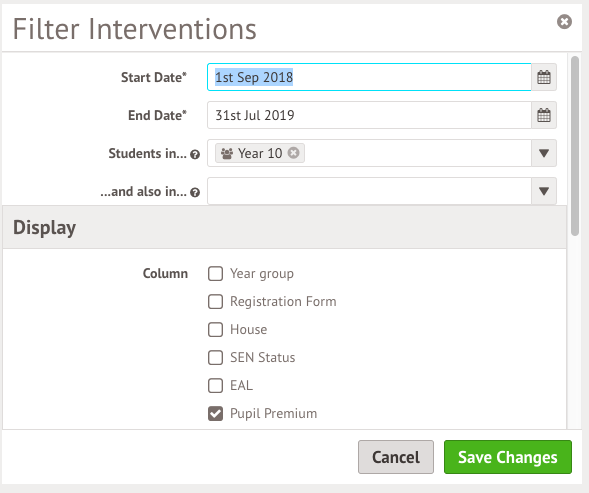 Click the filters at the top of the age to change who is shown in the table. Define your time period and define the student cohorts you are interested in analysing.