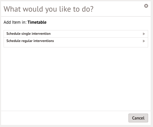 If you used the Timetable Slots tab, it will automatically show the regular interventions option.
