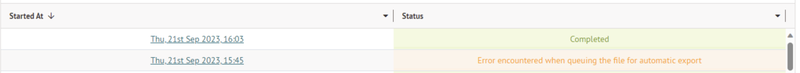 You may see an error in the Completed Exports section highlighted in orange.