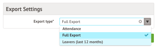 • The export type of Attendance or Full Export.