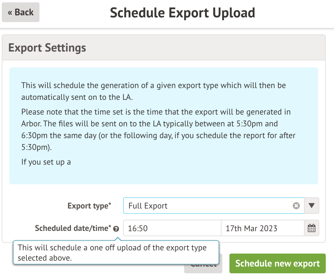 We have also included the new Last day of the academic year scheduling option for automated Leaver exports.