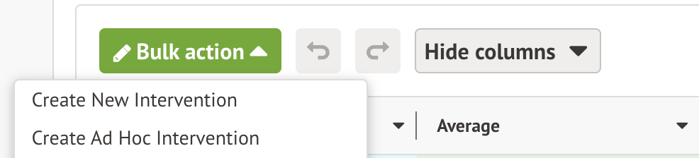 The Bulk action button can be used in multiple ways. You can use it to add marks as shown above, or to send communications or add students to interventions.