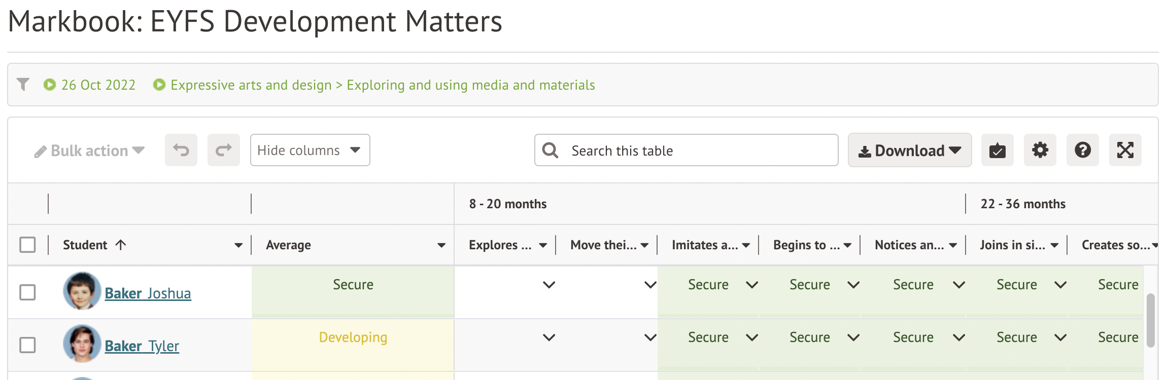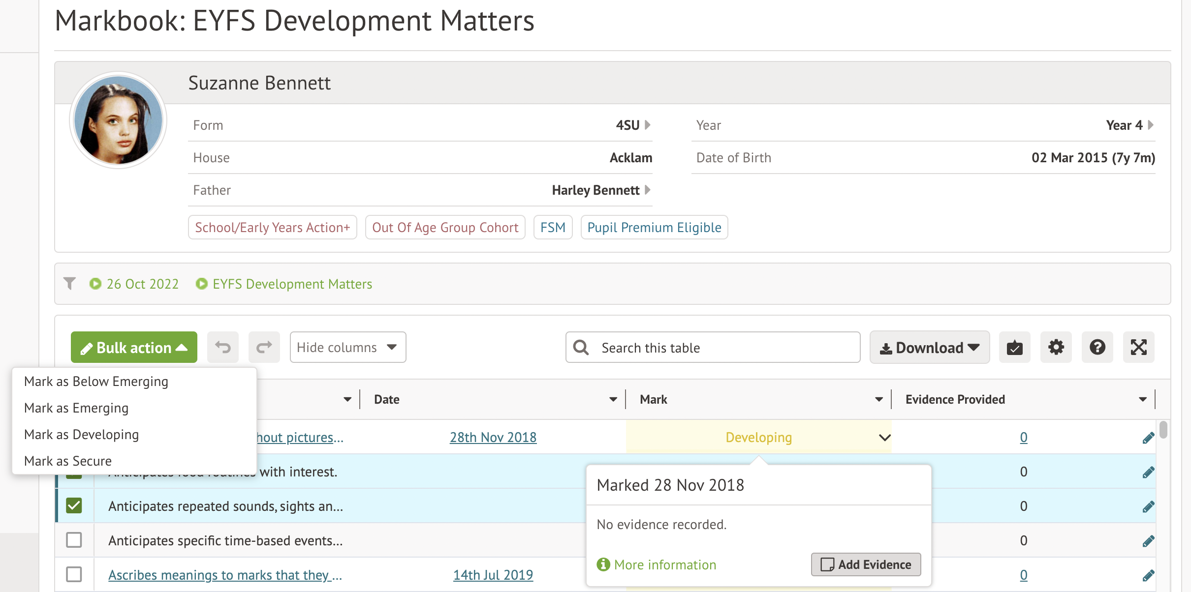 Once you've accessed the curriculum markbook, you can add marks or complete bulk actions.