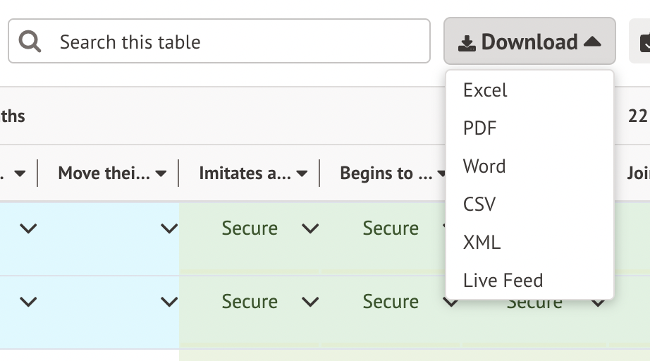 If you wish to download the data into Excel, PDF, CSV or XML, select the download option at the top of the markbook.
