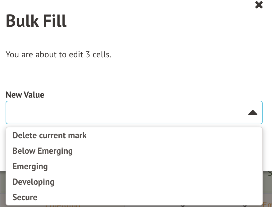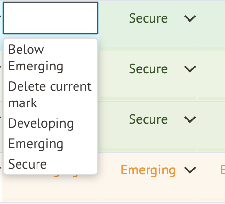 To input individual marks, click on the appropriate cell and choose the correct mark from the drop-down menu.