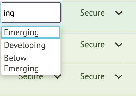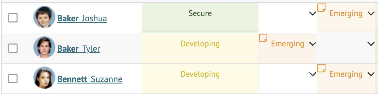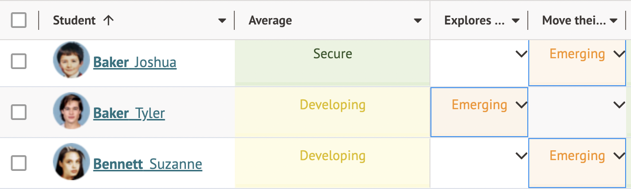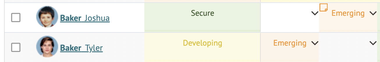 On entering marks, you will see there are 3 different colours as a quick visual overview of where the student is working at: