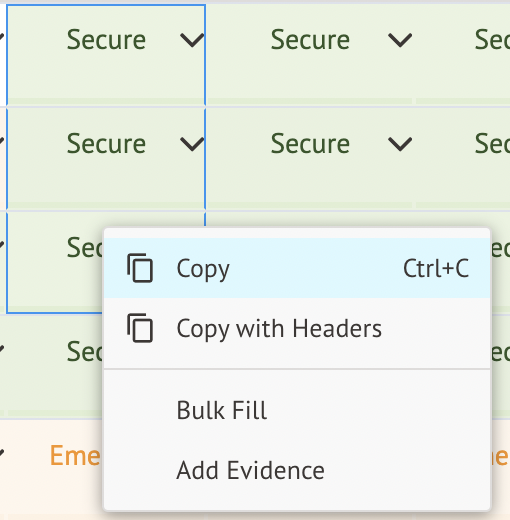 You can bulk mark statements by holding down your control key and selecting the cells to update. Click the Bulk action button to choose Add Evidence.