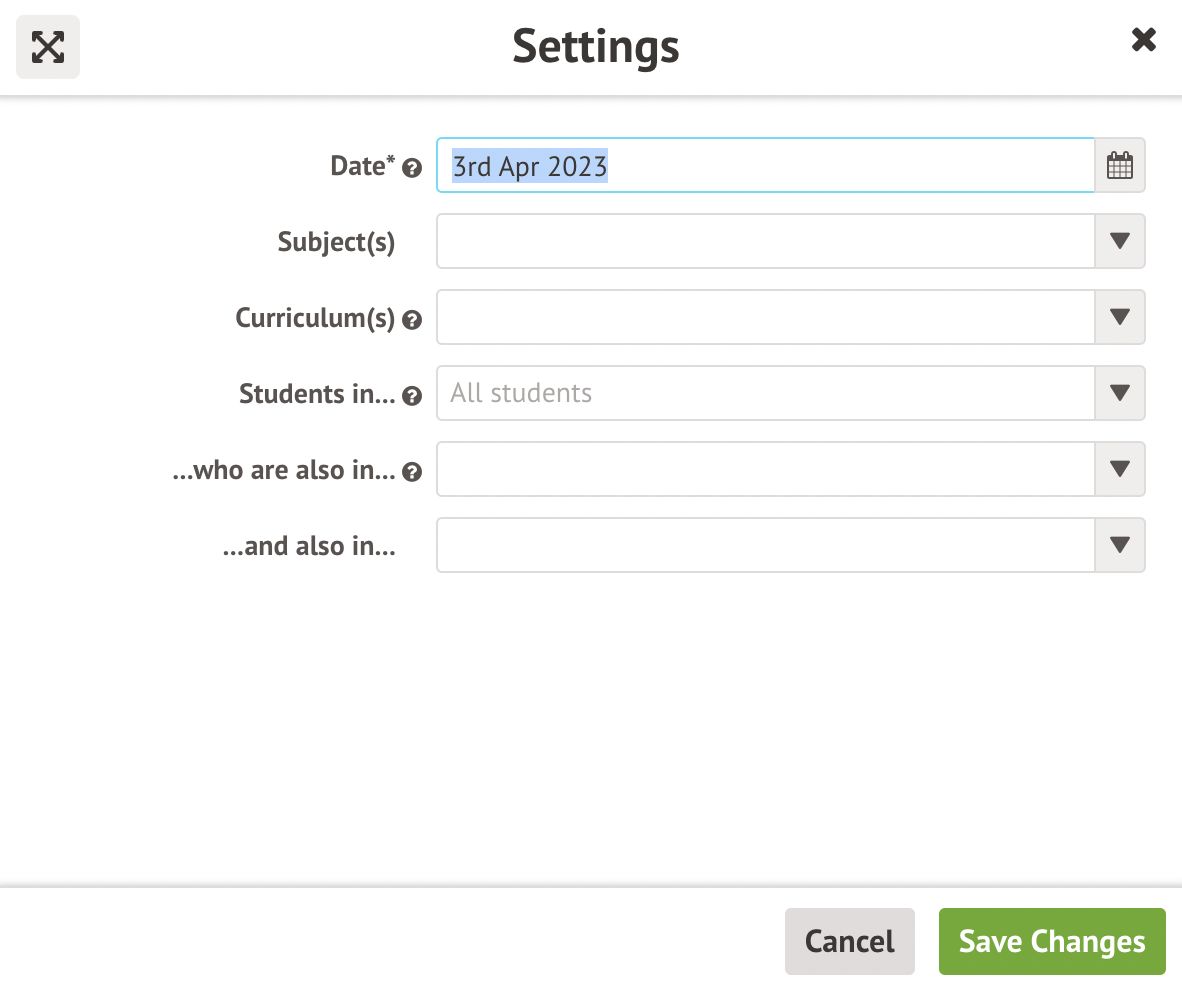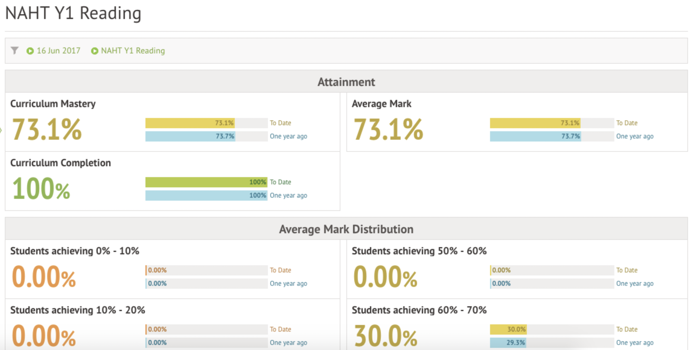 Click on the filter bar to select specific subjects, choose the date you want to focus on, or just look at specific student groups (e.g. pupil premium, or year 4).