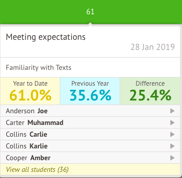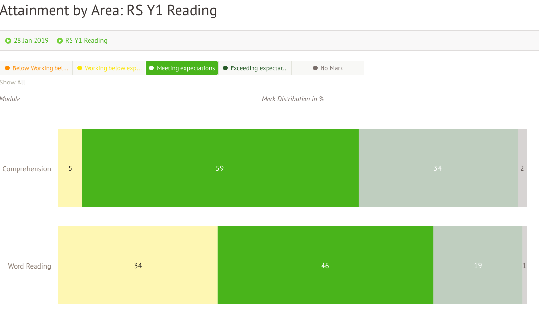If, for example, maths and reading has the majority of students at secure, but writing has a large number of student still developing, you can follow up with the teacher.