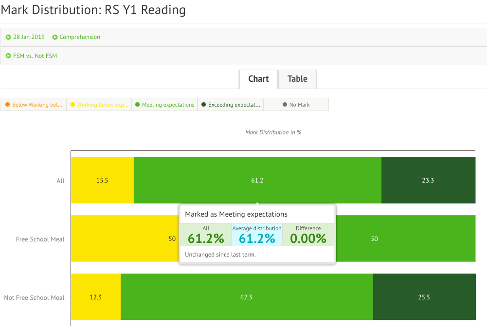 You can filter the chart by student groups such as FSM vs non-FSM or boys vs girls by clicking into the filter bar.