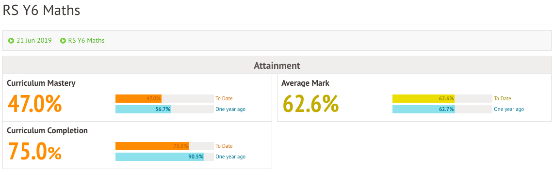 This page allows you to identify periods when the curriculum mastery may have stayed relatively static or has not progressed at a quick enough rate. With the average mark, you’d want to see it staying relatively high before students start covering new content. A drop in the average mark may indicate that more is being taught and not everything has been grasped fully yet.