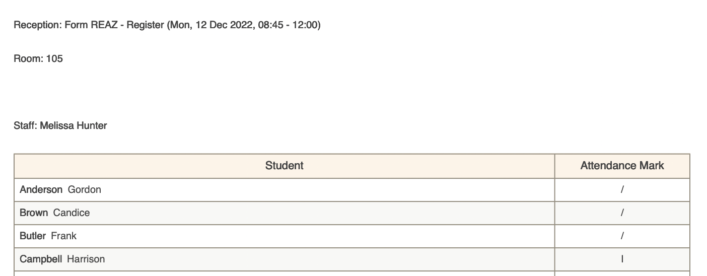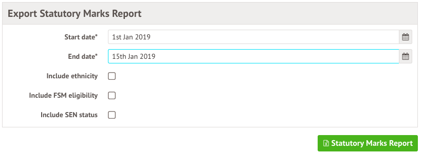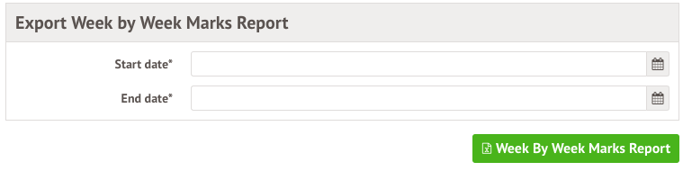 Here you can generate an excel report of all students statutory roll call marks by choosing the reporting dates then clicking the green button.