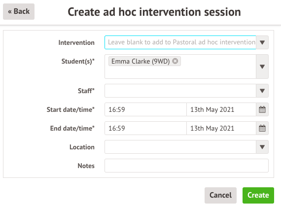 Click the orange button on the top right of the page to add them to an ad hoc intervention.