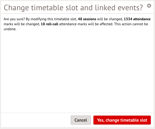 - Delete the timetable slot (if no attendance has been taken yet)