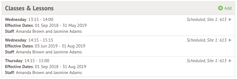 Your new timetable slot will then be scheduled and appear in the Classes & Lessons section