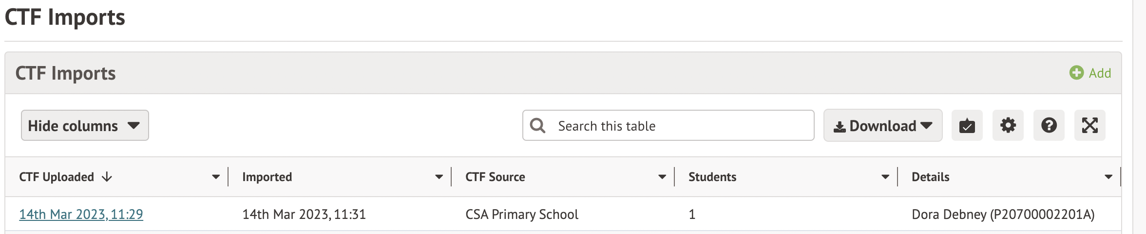 Once uploaded, return to the CTF Imports dashboard and you will see the CTF File you have just uploaded.