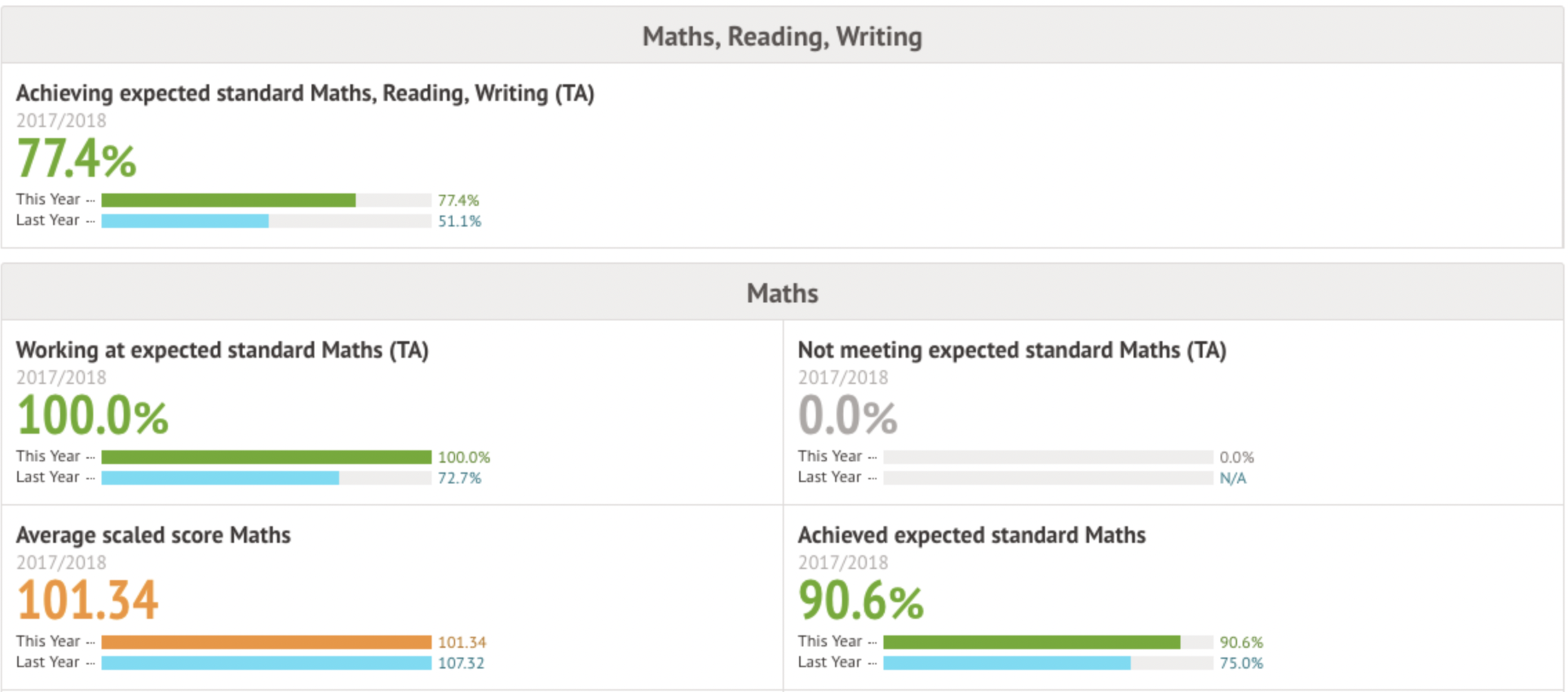 Statistics compared to last year will appear in Students > DfE Assessments > Analysis > Key Stage 2.