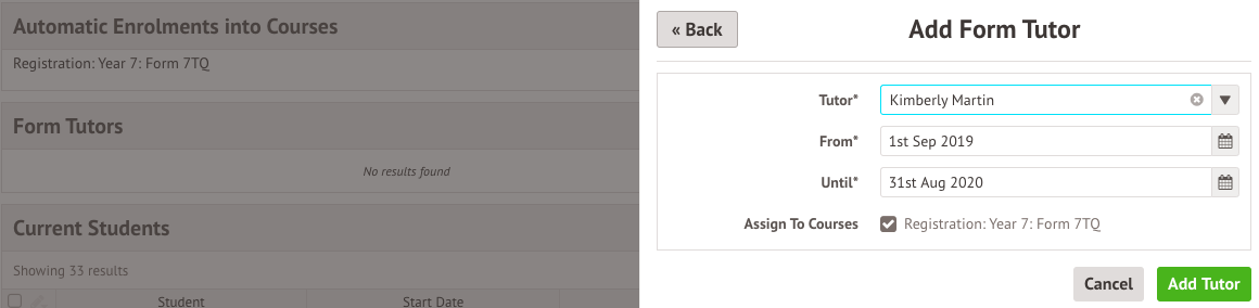 If there is already a form tutor, you can add another form tutor to allow both staff to be joint form tutors, or you can remove the initial staff member by: