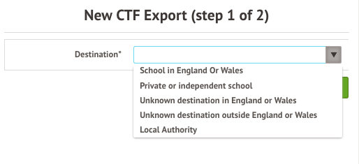 Top Tip: If creating a CTF for the Reception Baseline assessment, select an Unknown destination. You then won't need to select a school in the next steps.