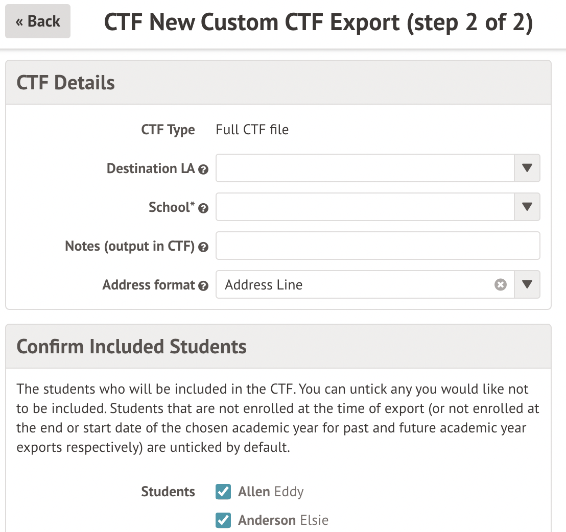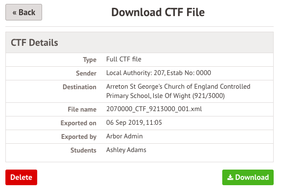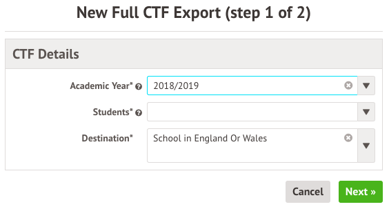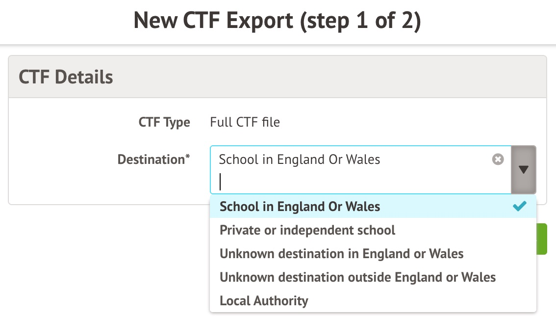 Please note: if a student is leaving full-time education, you don't need to generate a CTF for them. They will be unenrolled at the end of the year when you complete the New School Year Setup process.