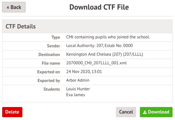 Please note that although the notification says that it is a CTF, it will be the format you chose (CML/CMJ). The LA listed is your school's Local Authority.