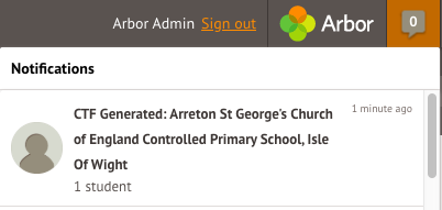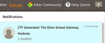 Once you have done this, a CTF will generate in the background. You will be notified via the Bell icon in the left-hand menu once the CTF has been generated.