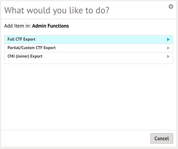 - Full CTF Export - this type does not allow you to specify which section to include; all sections are included