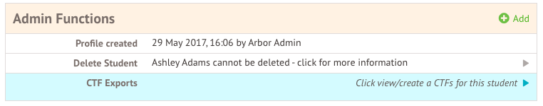 To generate a CTF for a single student - if they are moving to another school, for example - go to the student's profile, scroll to the bottom and find the Admin Functions section, and follow these steps: