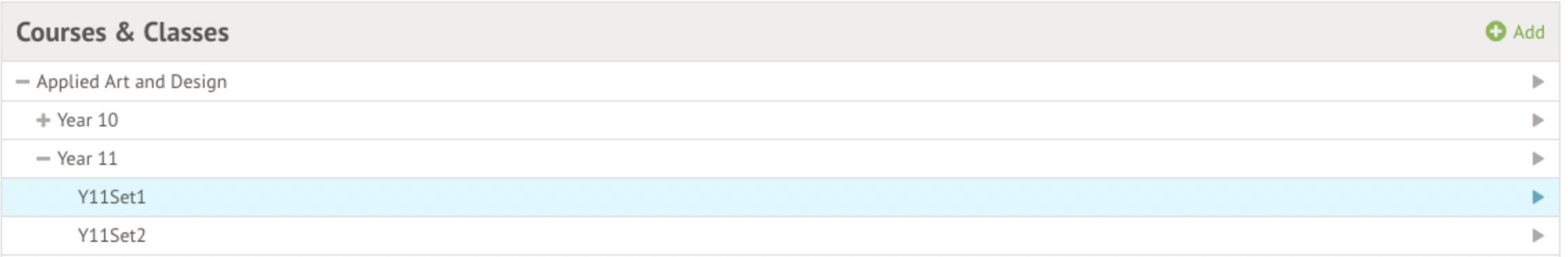 - Click to select the course the staff member should be able to take lessons for. To allow the staff member to take registers for the whole course subject, select the top-most level, for example, Applied Art and Design.