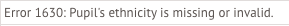 You might get errors such as Error 1630 in your census if you've not recorded an Ethnicity for a student - Pupil's ethnicity is missing or invalid.