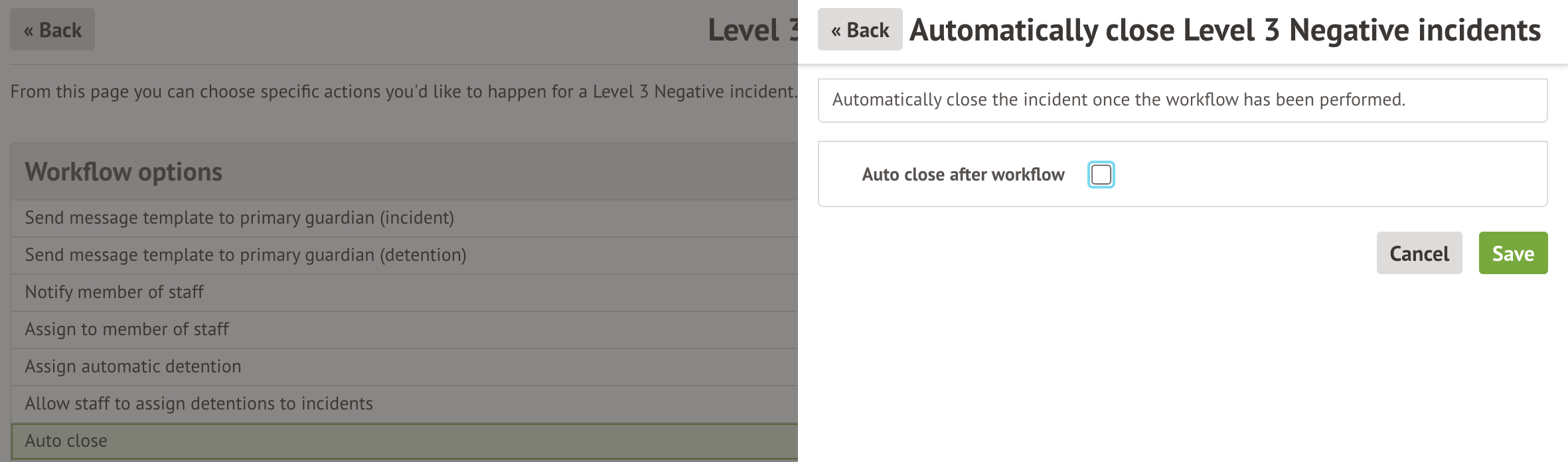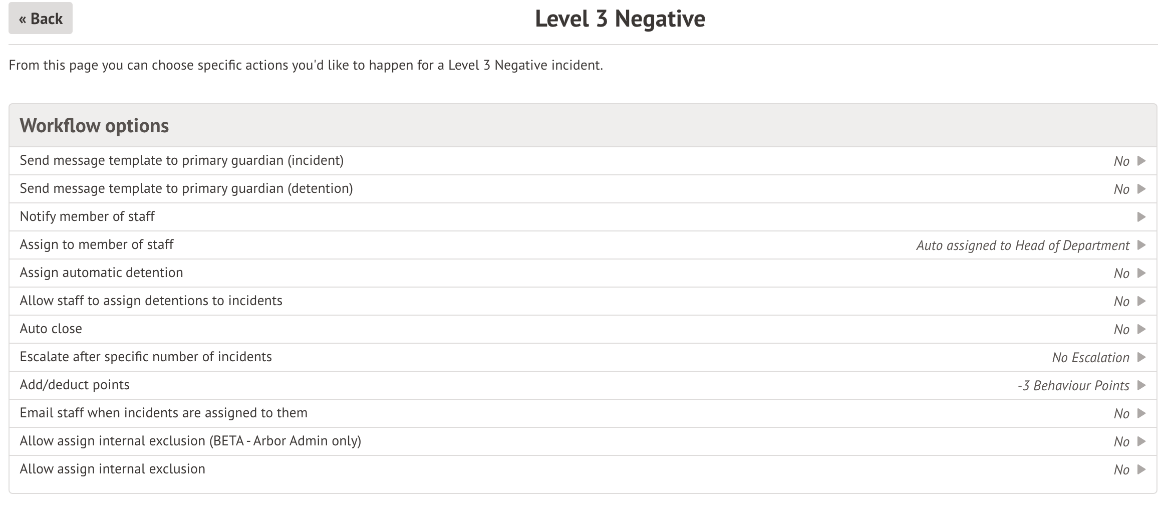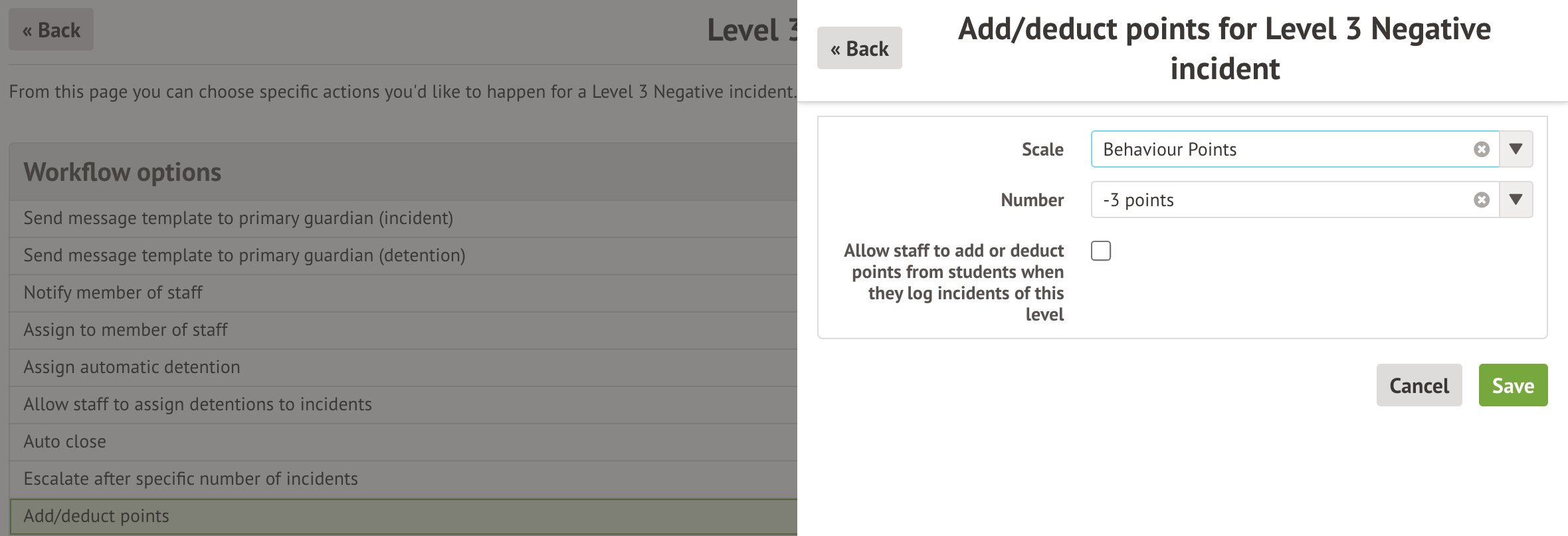 Select this option to automatically add or deduct behaviour points when this level of an incident is recorded.