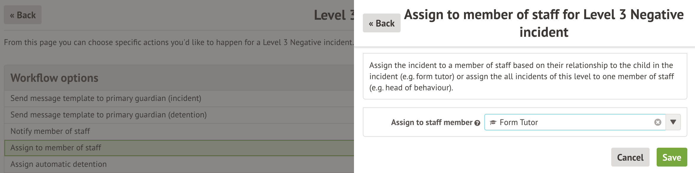 You can select who to assign this level of incident to. Please note that you can only assign one person per student.