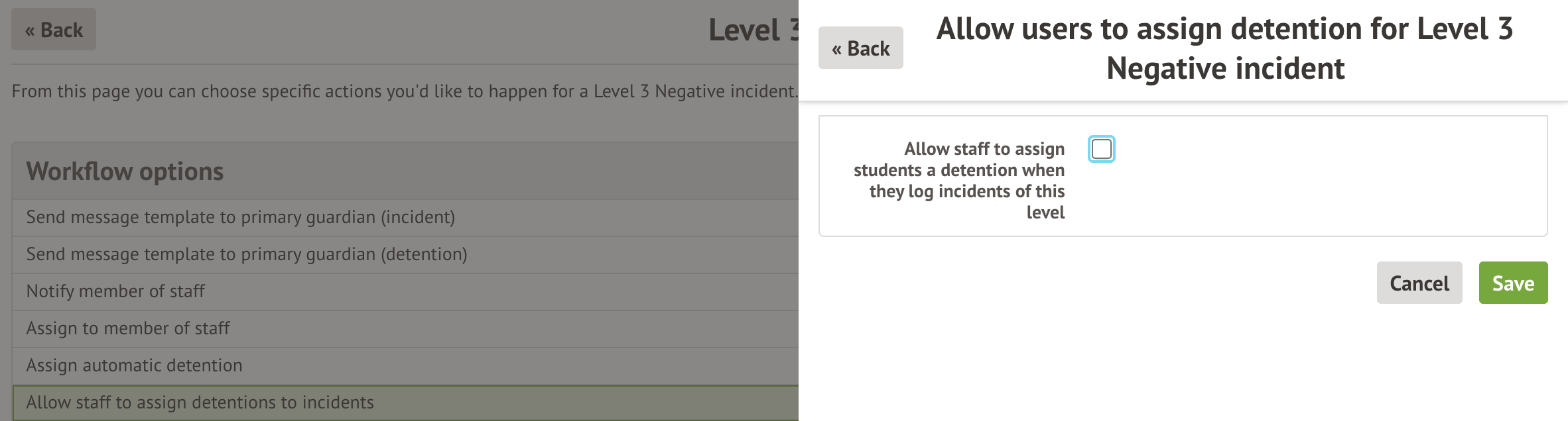 3. Select 'Allow staff to assign detentions' to allow staff to assign students to detentions manually when they log incidents.