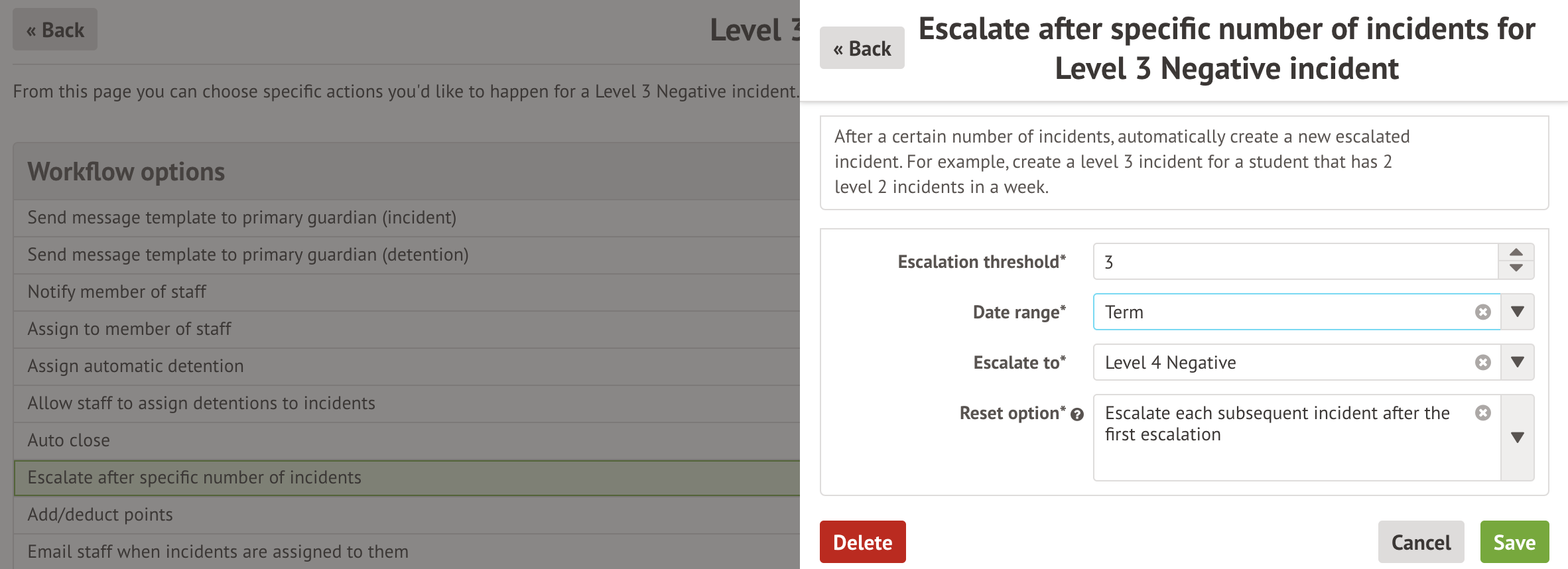 - You can only escalate the severity level of the behaviour, not from one behaviour type to another.