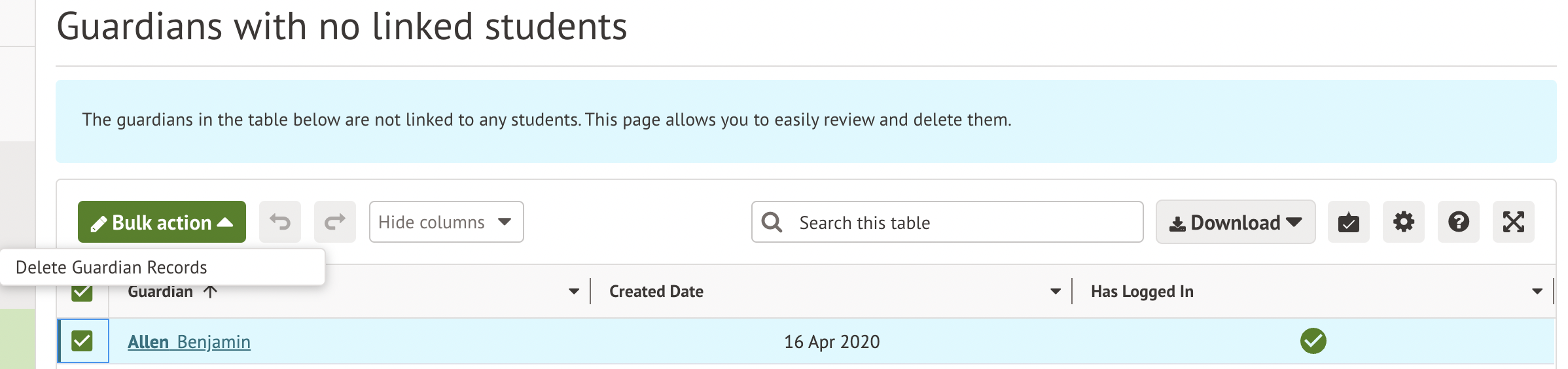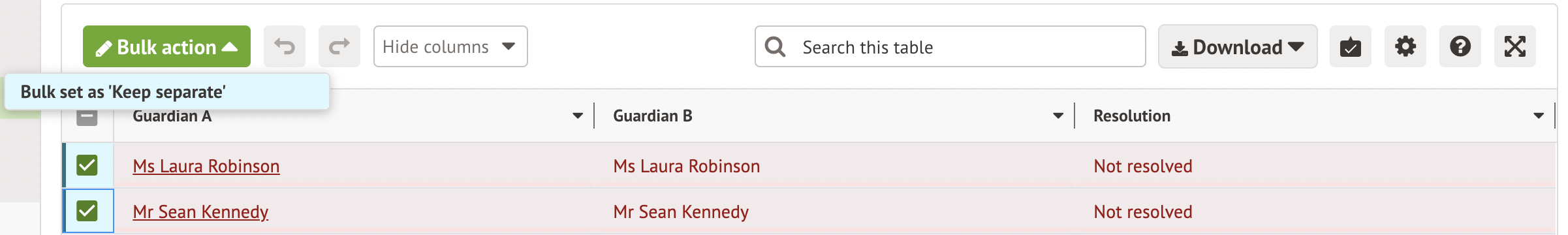 This article provides guidance on identifying and resolving duplicate guardian profiles in a school system to enhance communication and reduce costs. It details the steps for merging or deleting profiles, the necessary permissions, and the implications of these actions, emphasising that merges cannot be undone. It also addresses bulk actions and troubleshooting for unflagged duplicates.